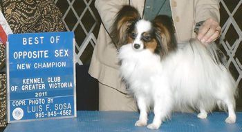 American Champion Clearlake Clovis, International Jugend Champion, National Jugend Champion. Now being shown in the U.K. Owned by Elizabeth and Karen Anderson (Northlyte Papillons - Scotland)
